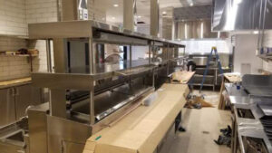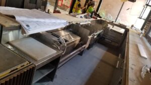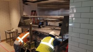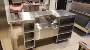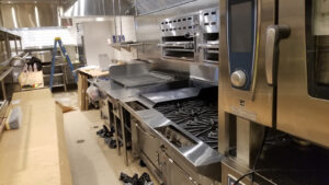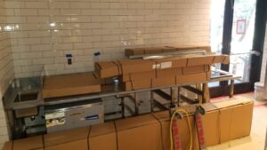 This install project involved some our most seasoned techs who performed the install of the bar, cookline equipment, Delfield chef’s counter, dish washing sink, beverage counter and shelving, mop sink, and the baker’s table and dough rounding equipment.